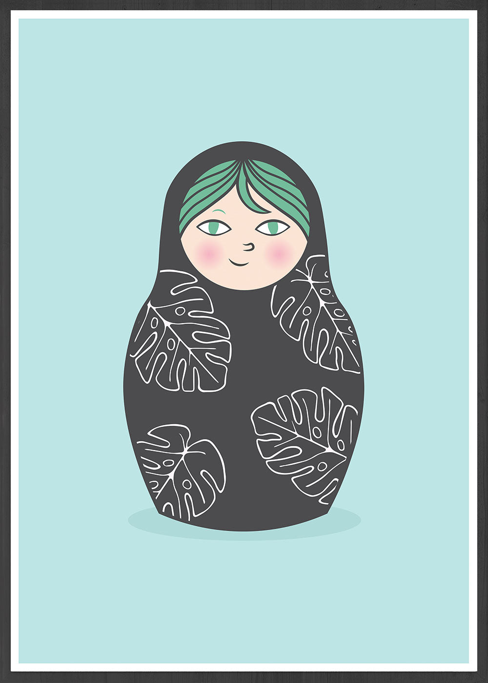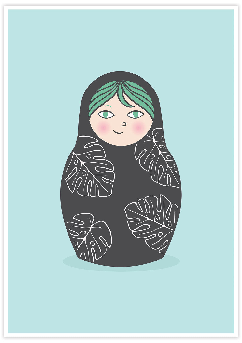 Matryoshka Monstera Illustration Print by Cristina Quero. Russian Doll Inspired Print.