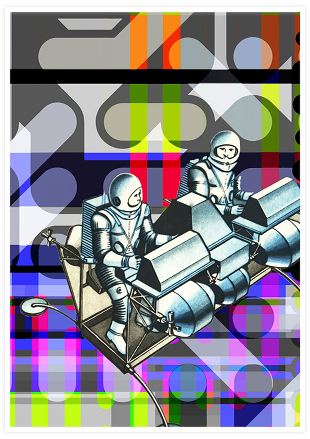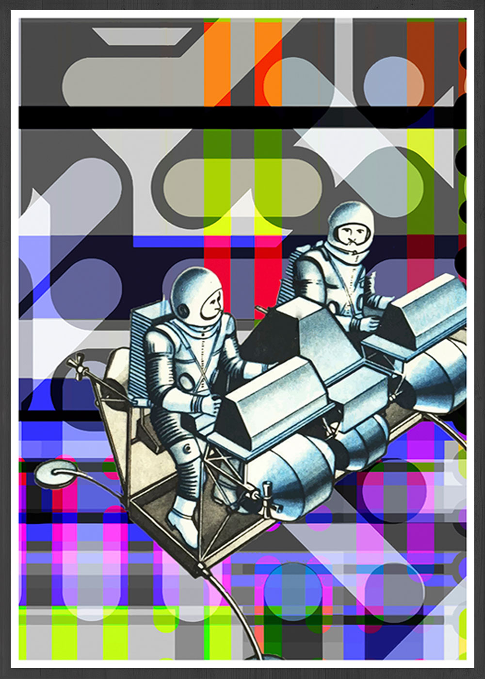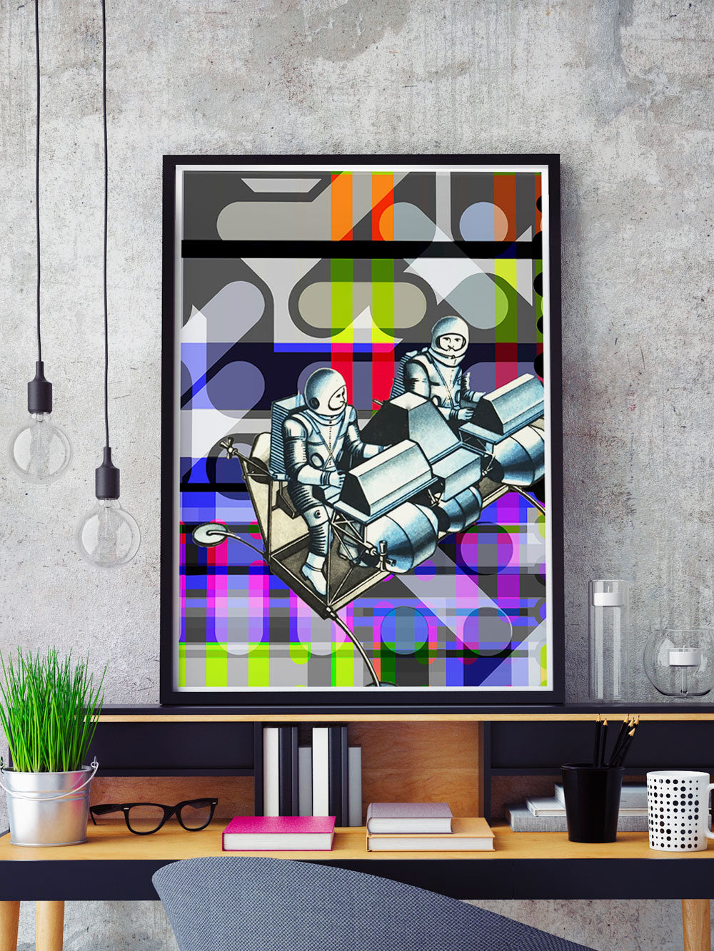 Crash Landing Collage Wall Art by Allison Tanenhaus. Soar through space with these new-old explorer buddies.