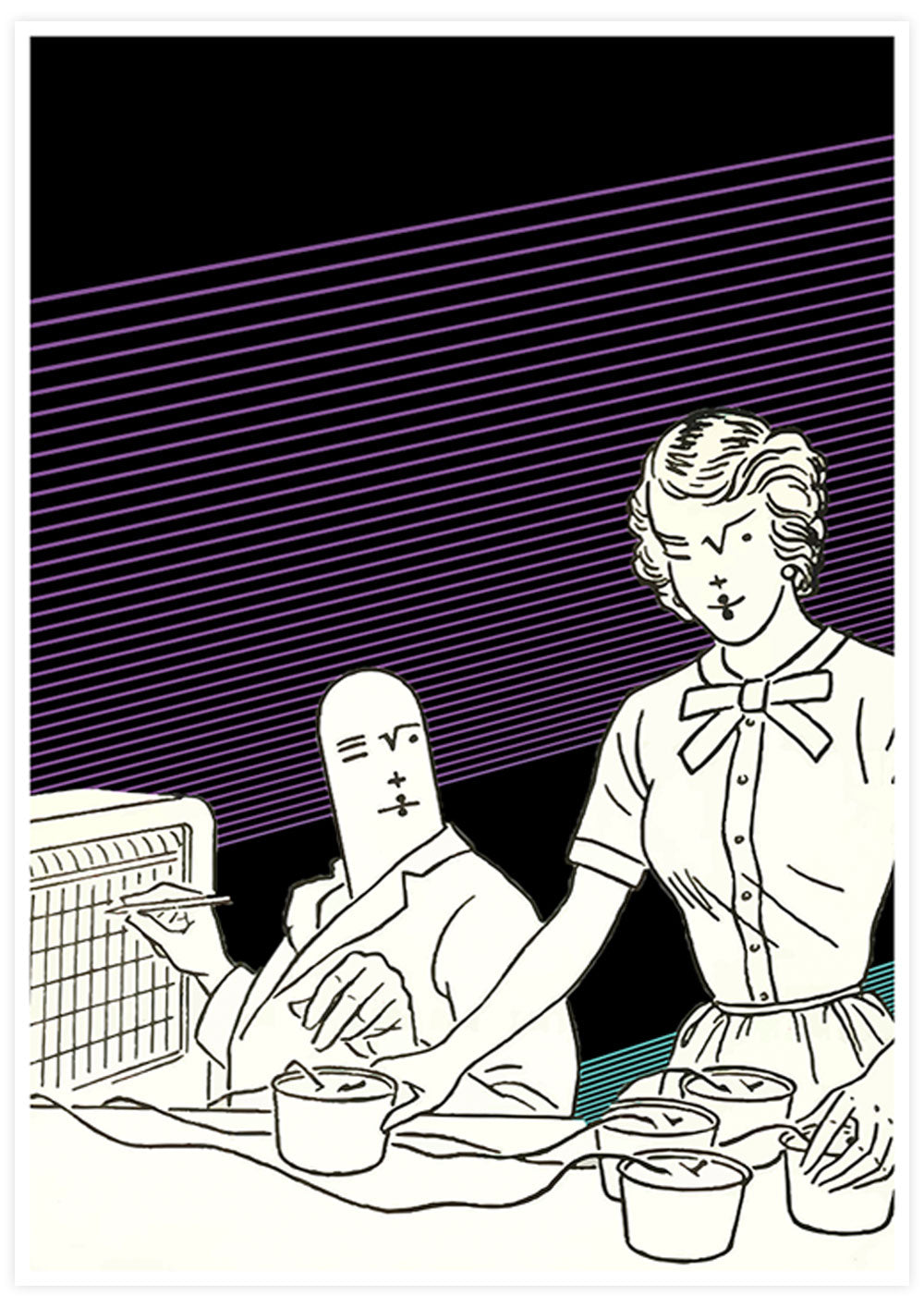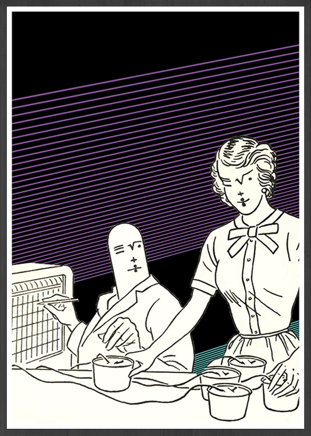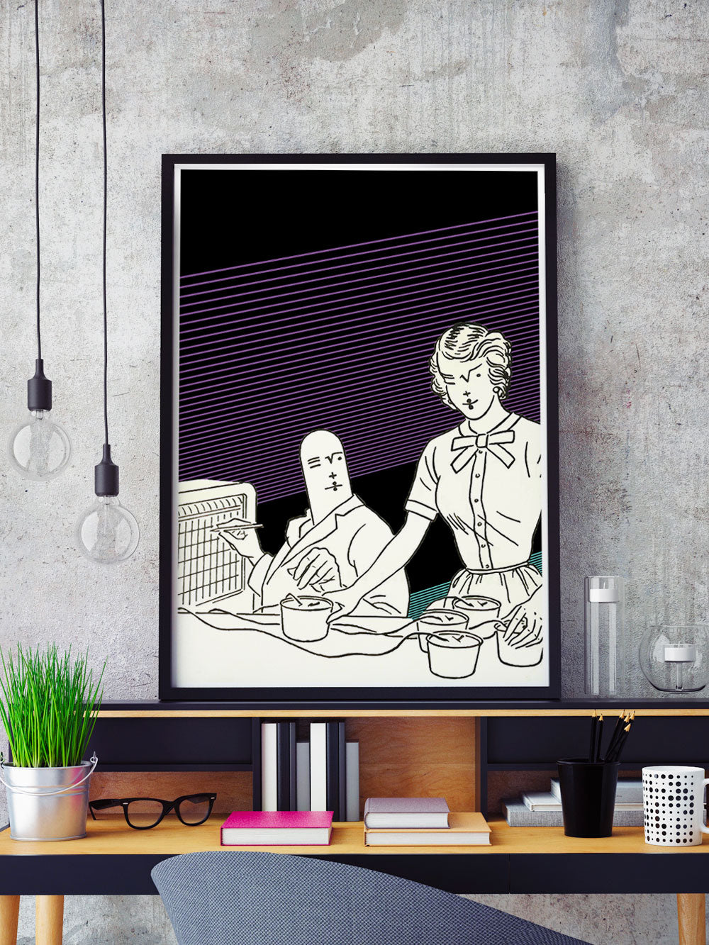 Linear Frequency Illustration Print by Allison Tanenhaus. The lab gets fab in this linear retro wonder.