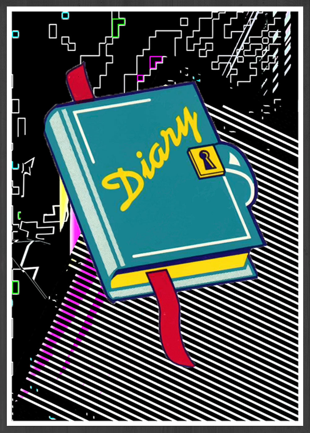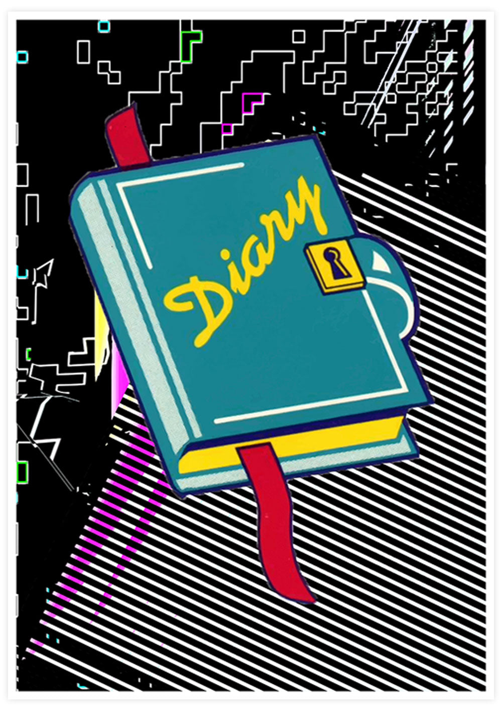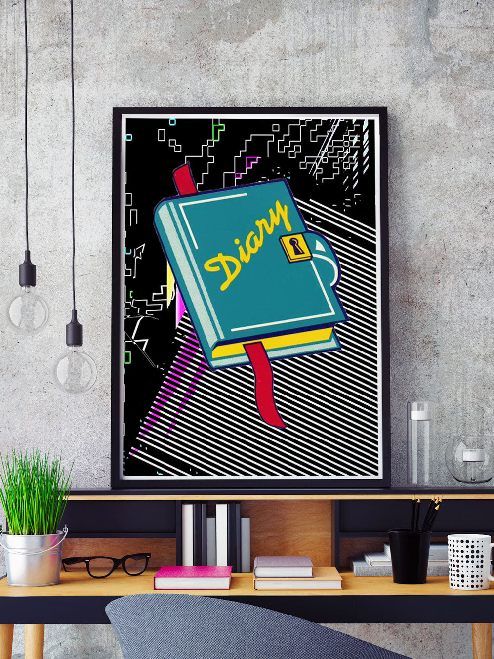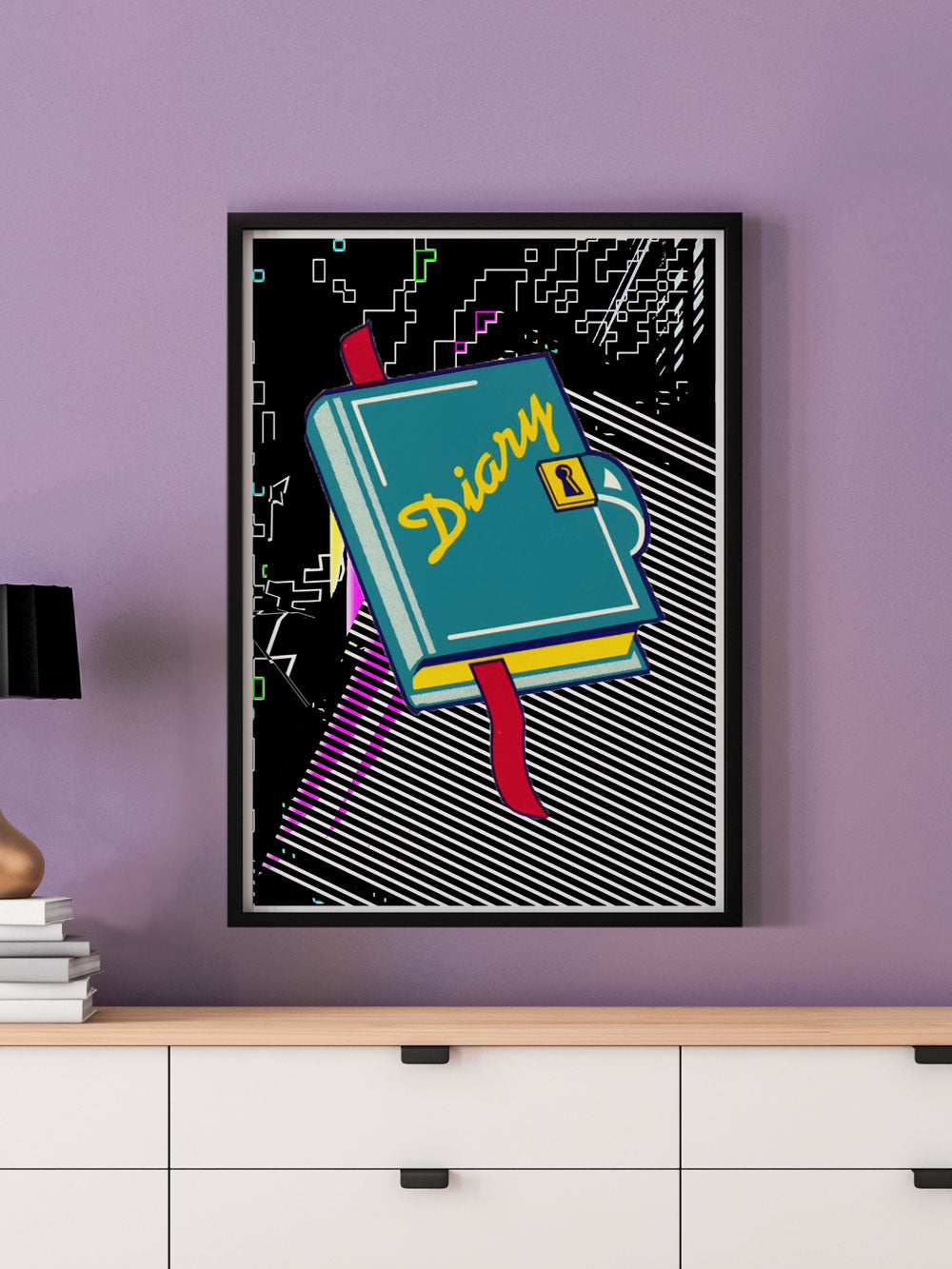 Page Invaders Illustration Print by Allison Tanenhaus. Sneak a peek into this 80s-tastic diary...if you have the key!