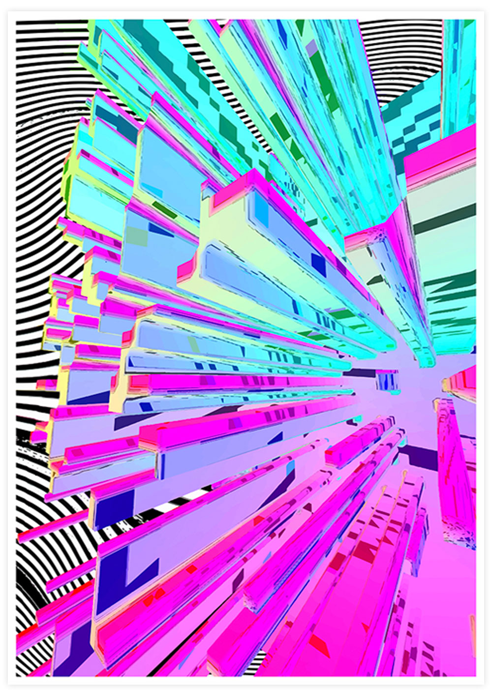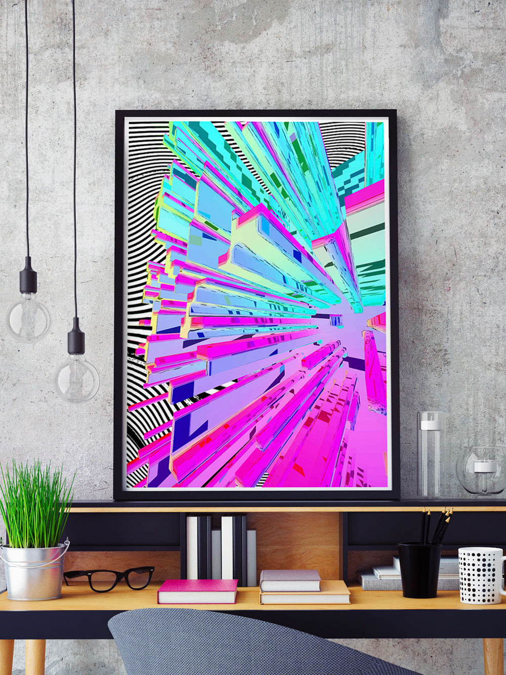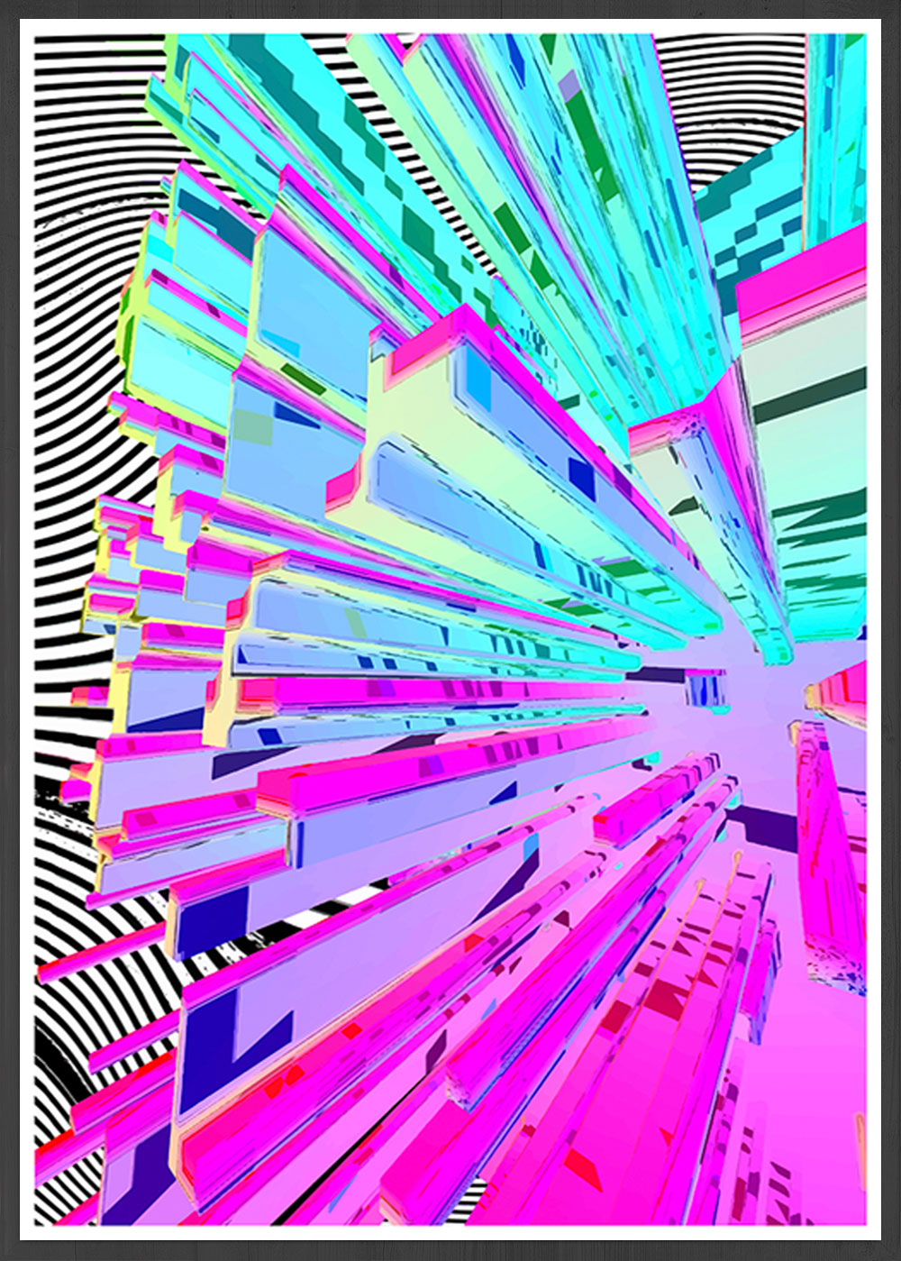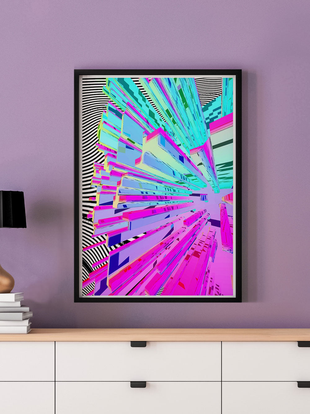 Wavy Crystal Glitch Art Print by Allison Tanenhaus. Glass rays get spectrally sensational, with a wavy op art backdrop.