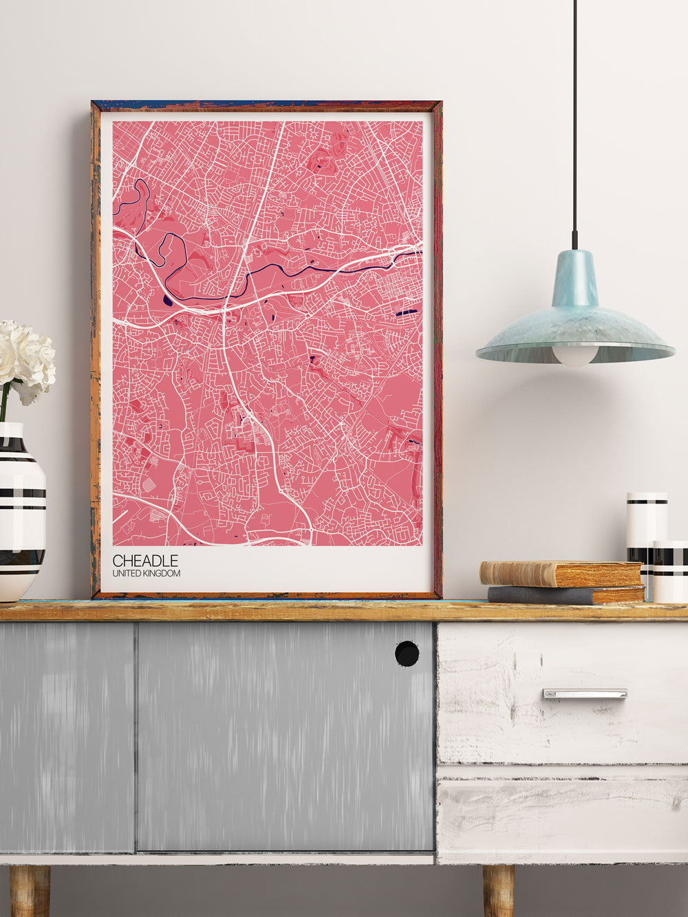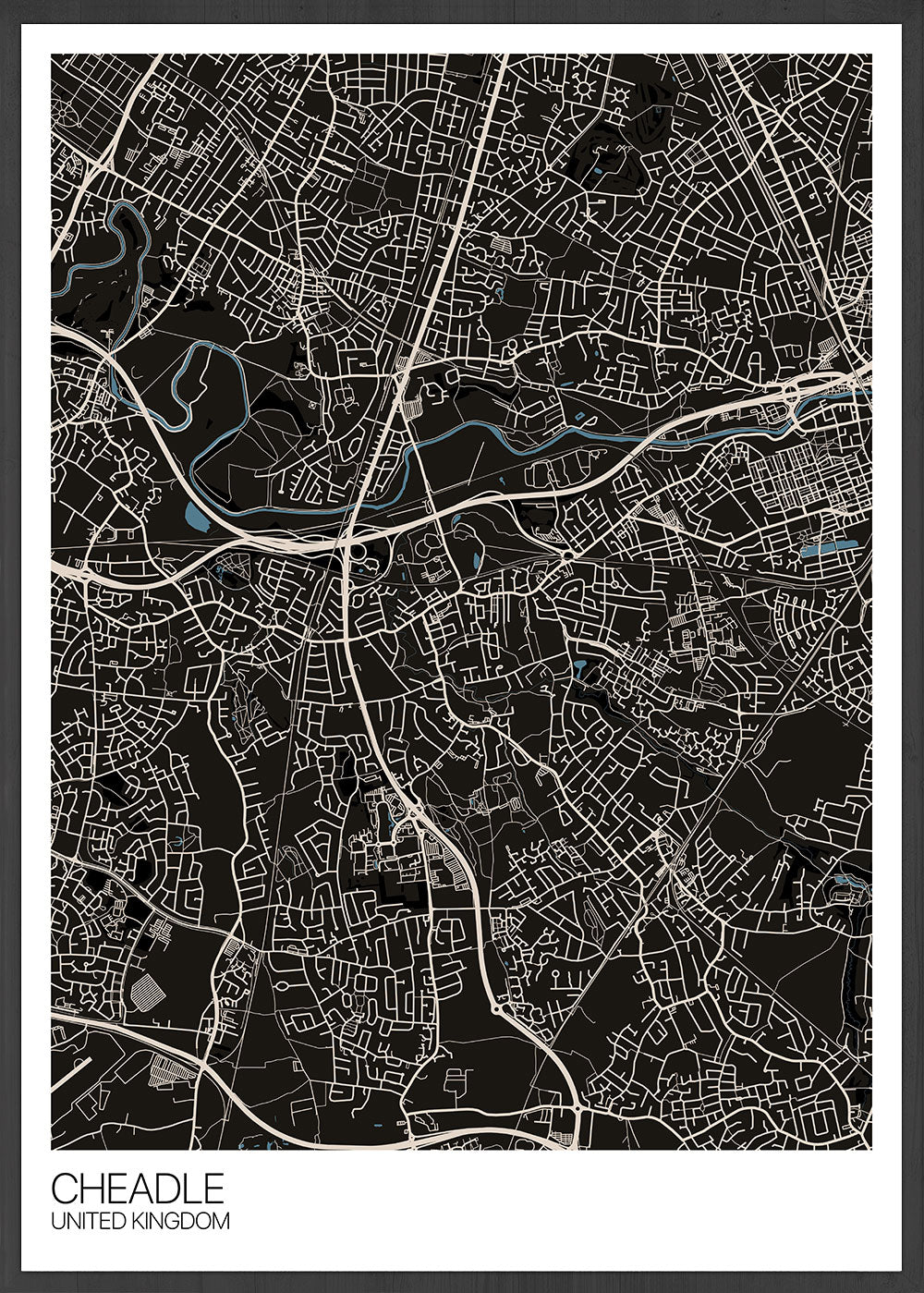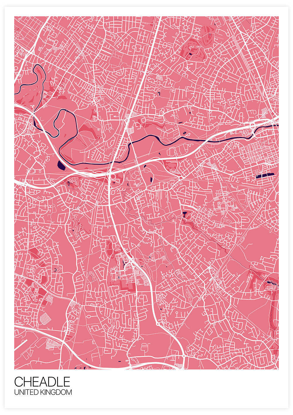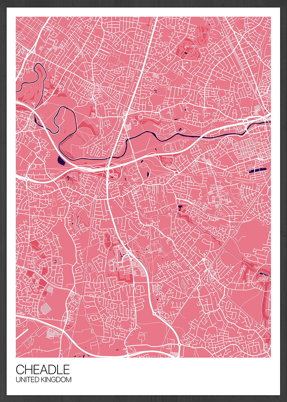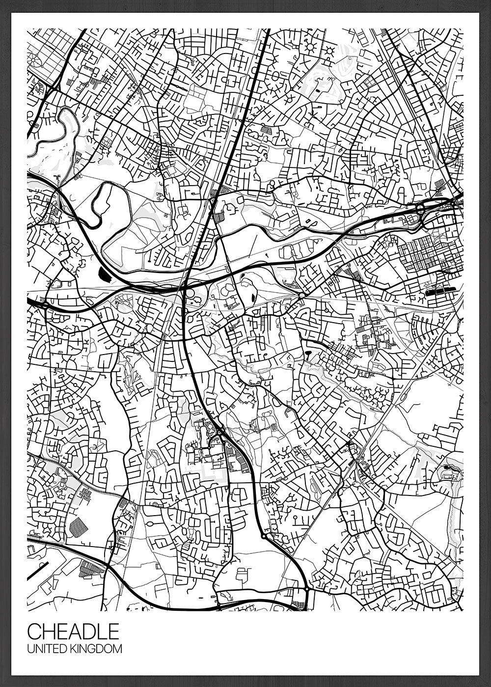Cheadle Stockport Map Print. This quintessential town map of Cheadle is a perfect scene setter for anyone local.  Cheadle is the home of The Underdog Print Shop and expect to us at the local markets with these amazing map prints.