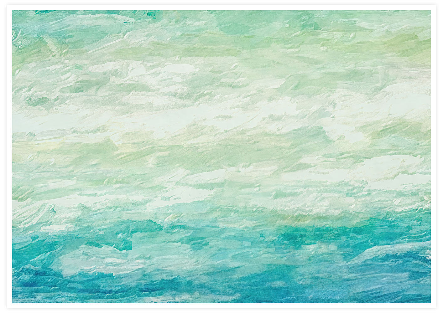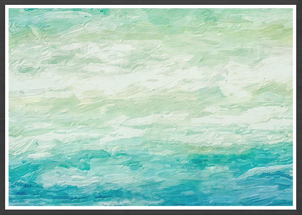 Follow the waves as they drift out to sea. This abstract has lots of textured brush strokes so the indication of moving and churning water is present. The beautiful green and turquoise colors are bright and calming.