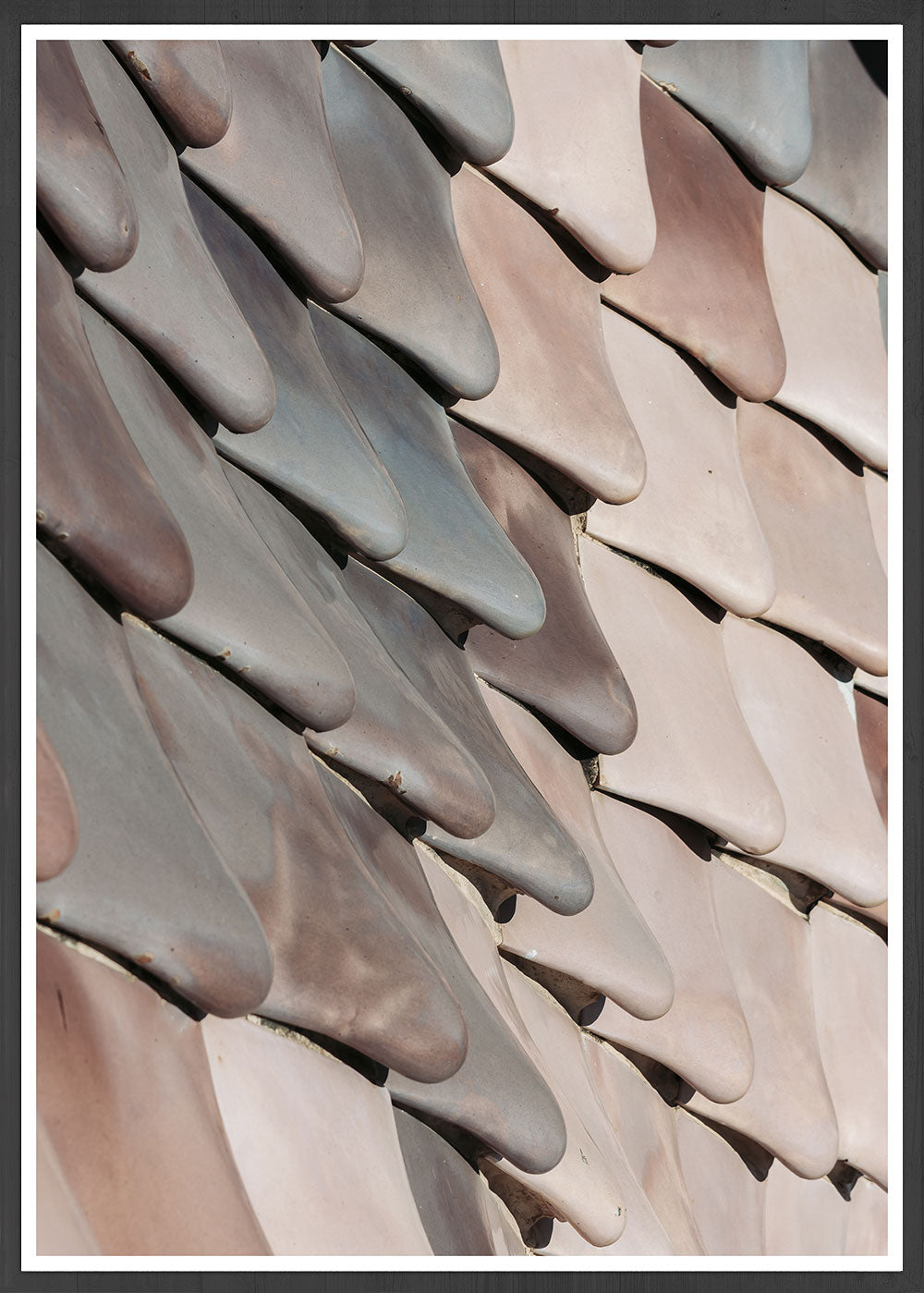 A close-up shot of the roof tiles from Batlló House, designed by Antoni Gaudí.