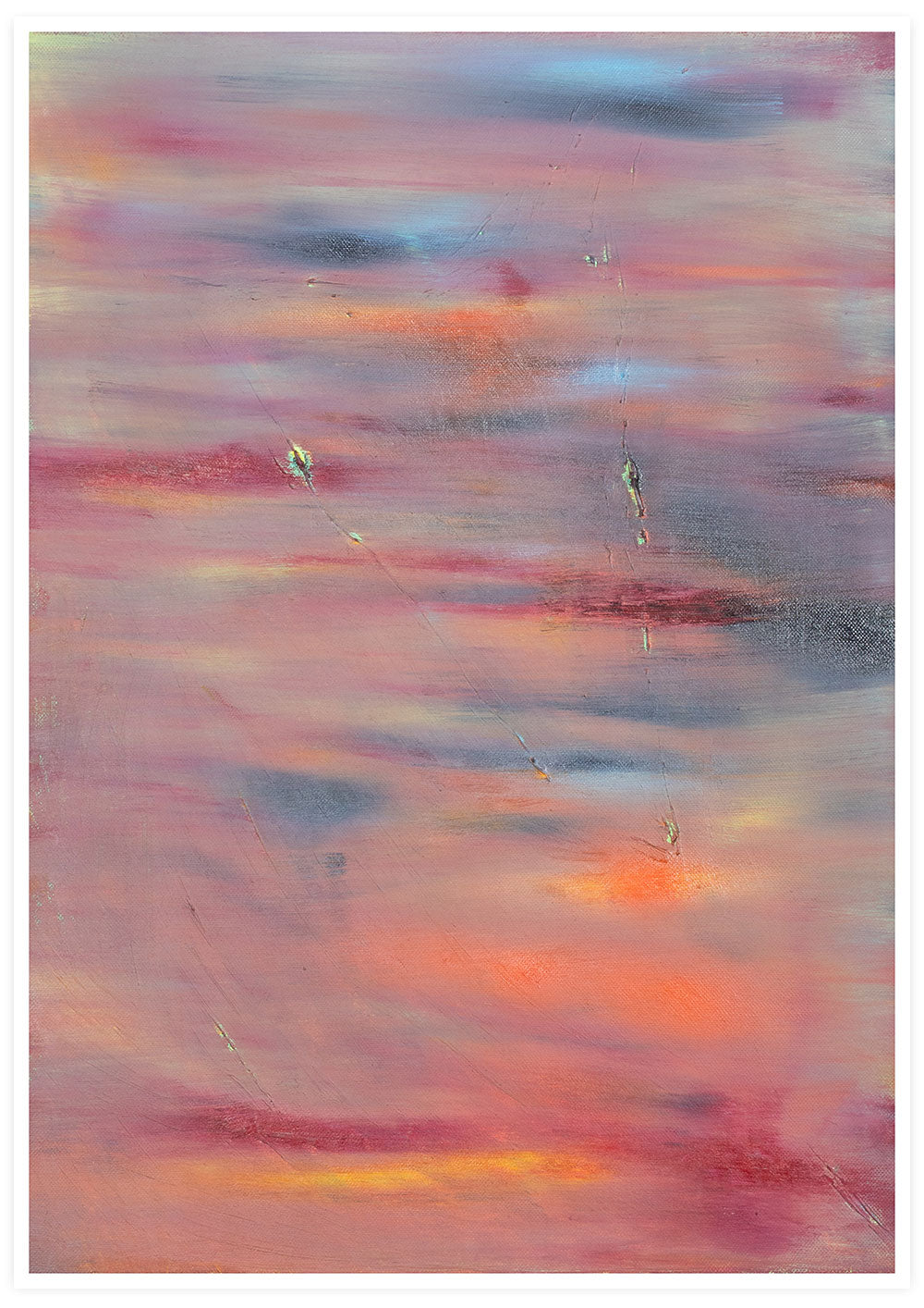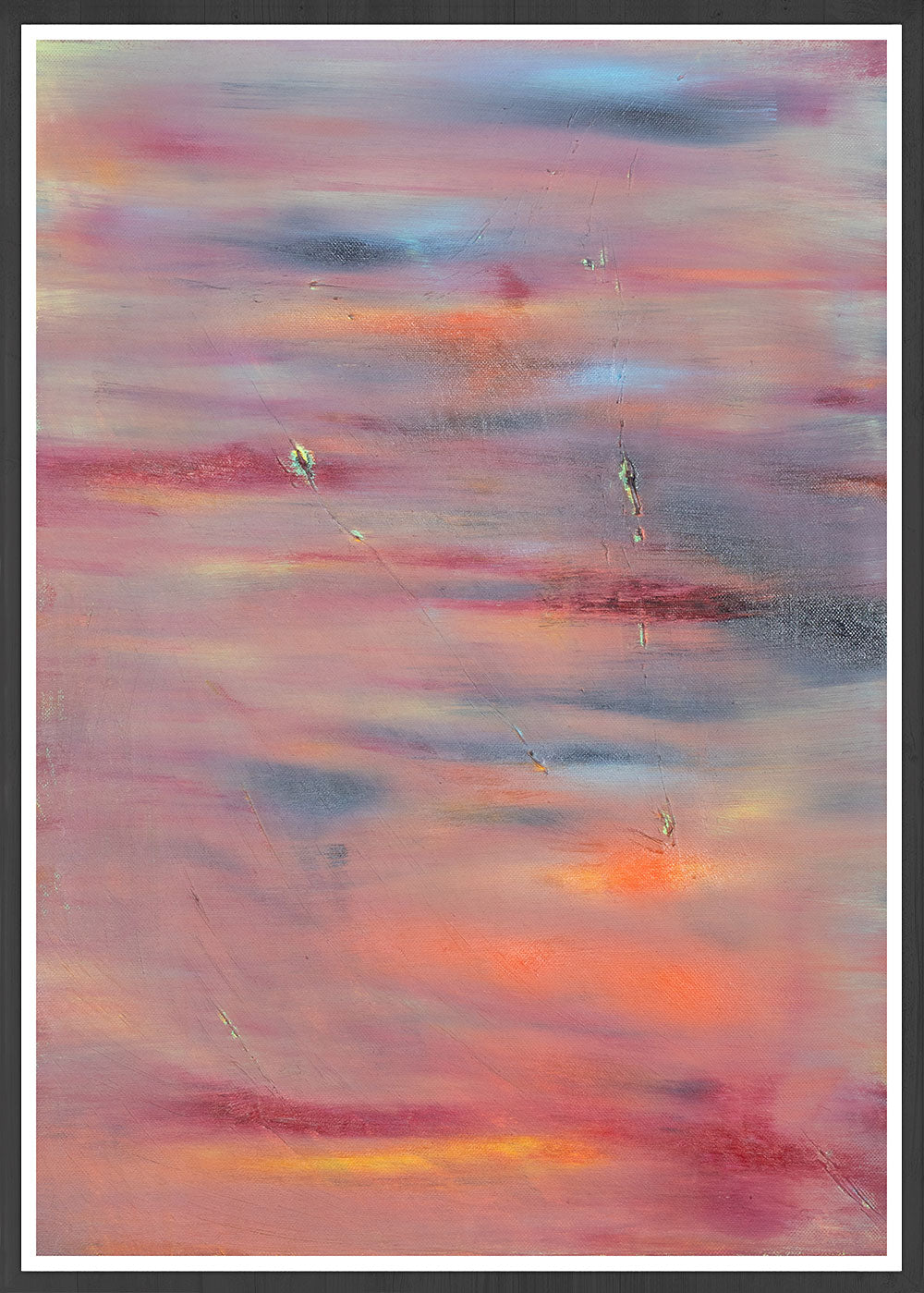 "This piece consists of an unpredictable sky, incorporating a blend of darker tones over the orangey tinges of sunlight as the sun attempts to shine through the overcast. This piece is dedicated to those of us striving to hang onto late summer, pining for every last ray of sunshine in the hope that the late summer sun will keep the autumn at bay for a little while longer.