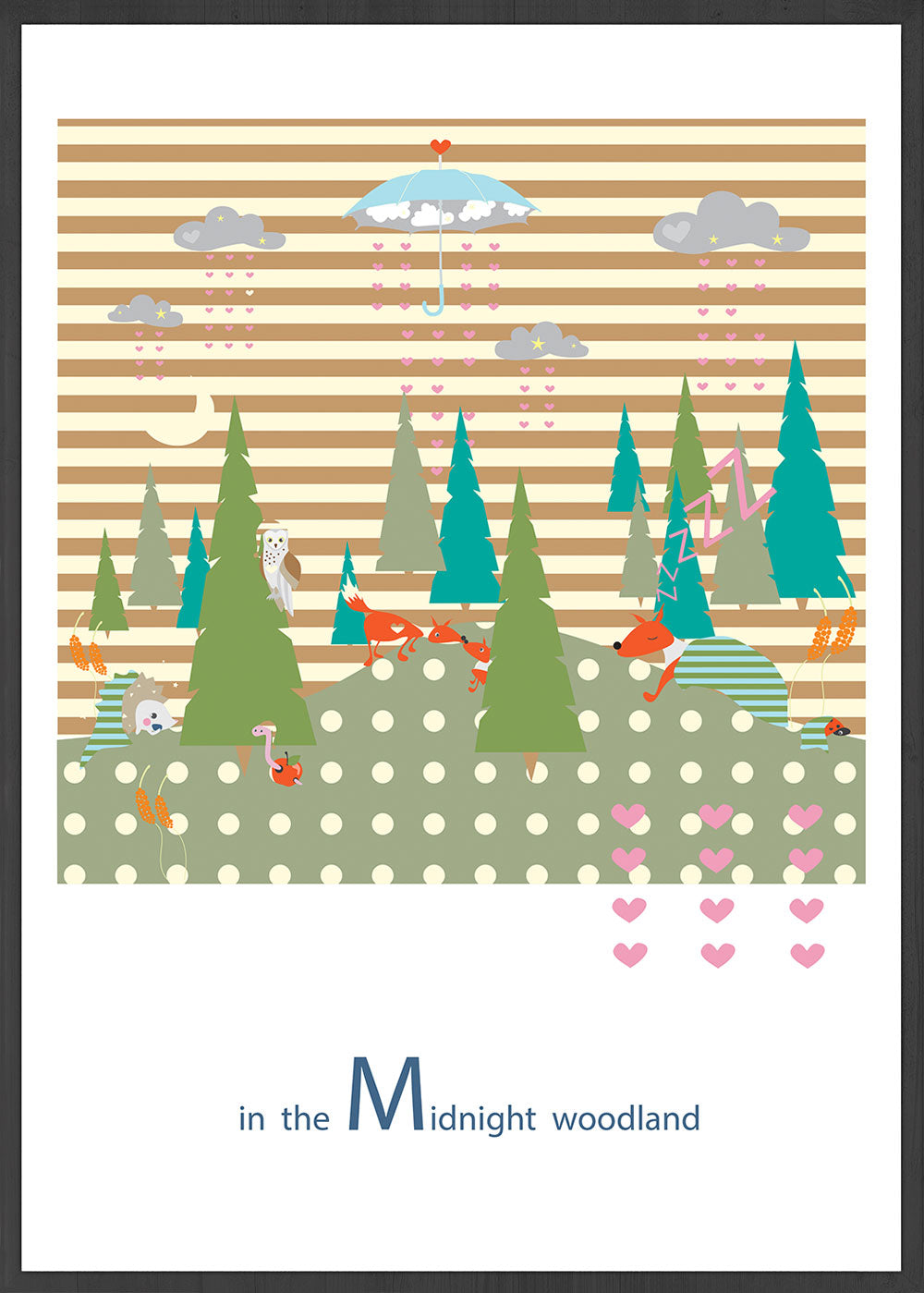 Midnight Woodland Forest Print by Griffin and Plumb. Part 2 of 3 Woodland Prints, The American dream, Written in the stars and Midnight woodland.