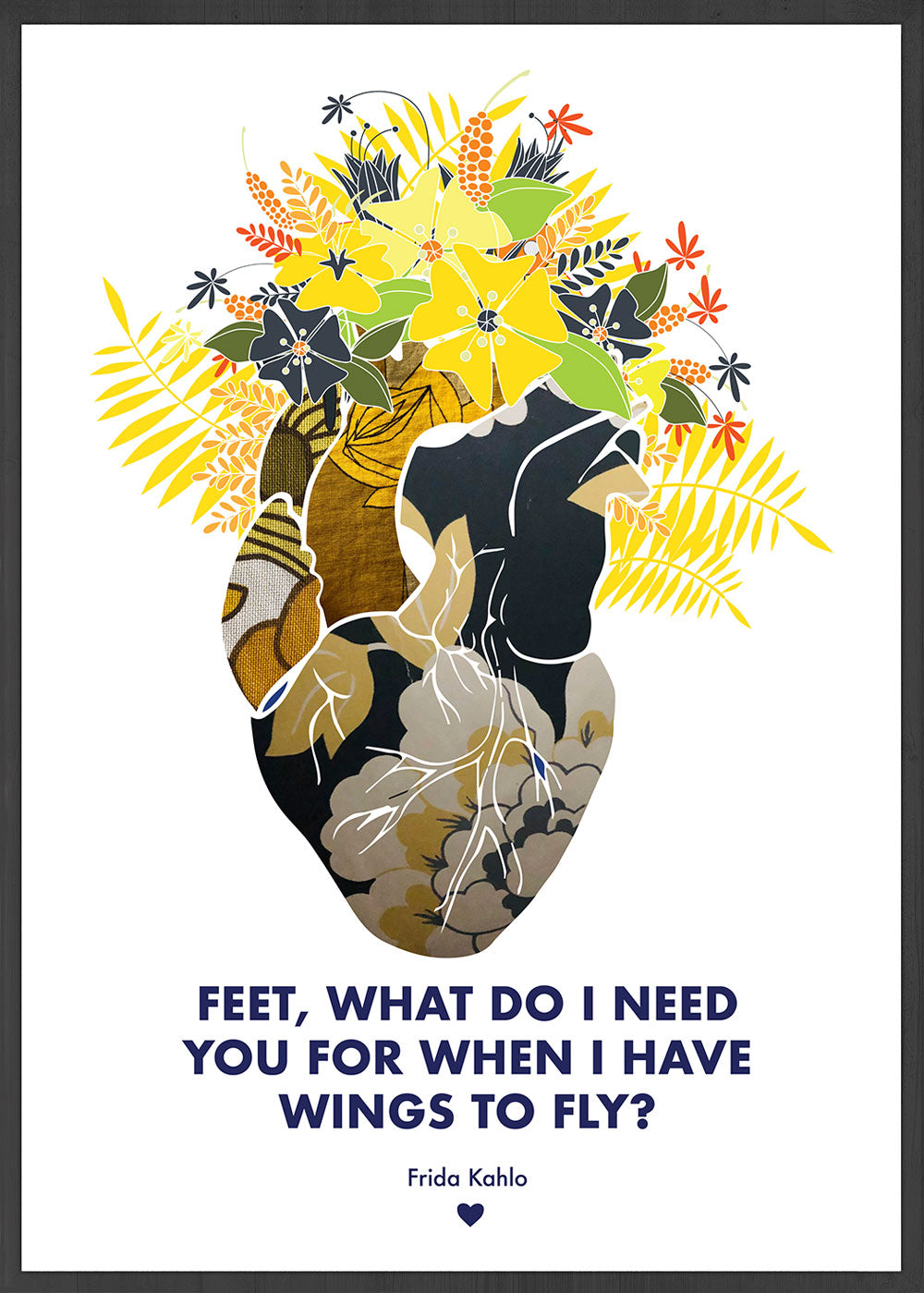 Wings to Fly Illustration Print by Griffin and Plumb. She triumphed in the face of adversity, though her life from beginning to end was far from kind. We interpret her heart to be strong, colourful and fierce.