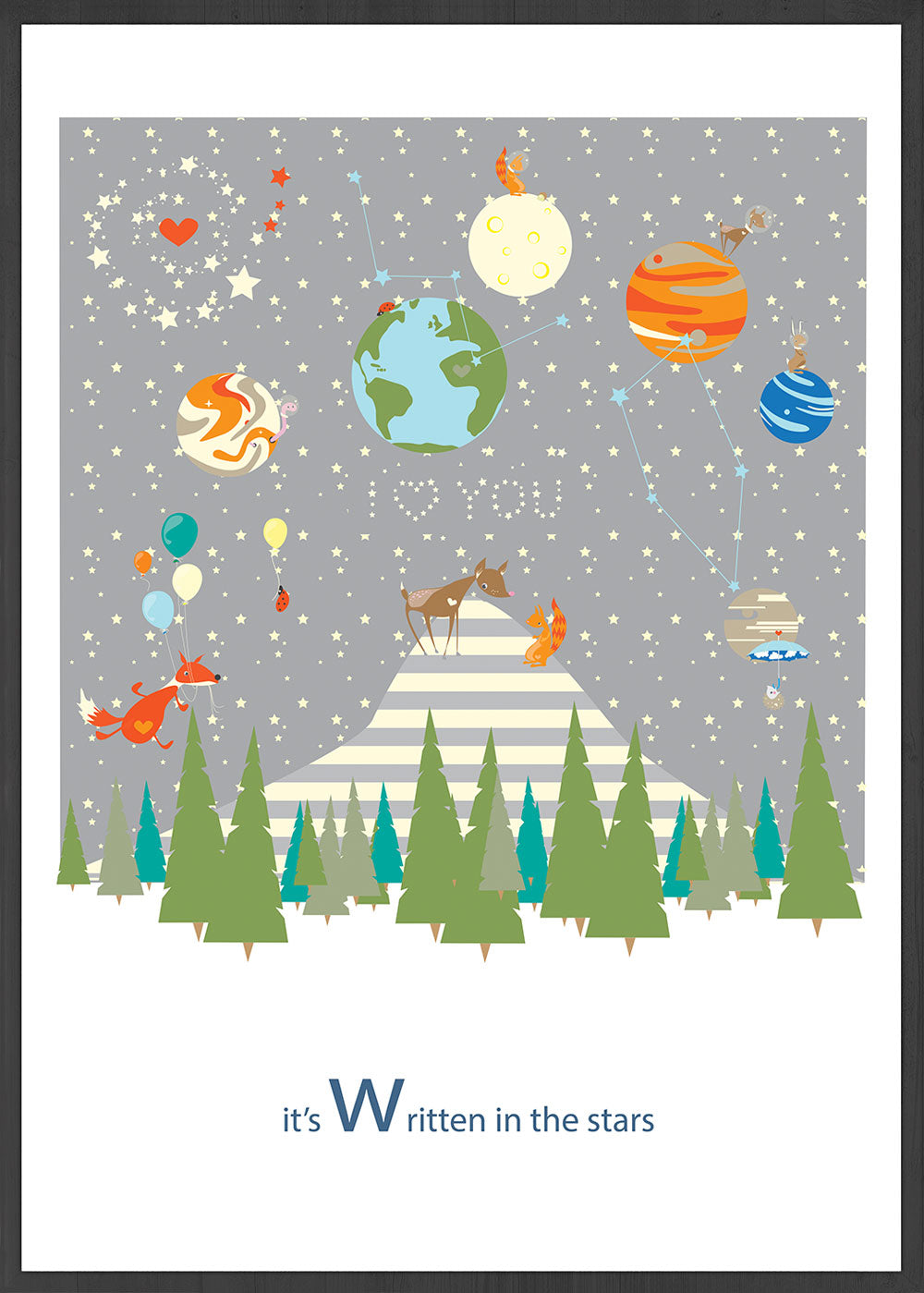 Written in the Stars Woodland Print by Griffin and Plumb. Part 2 of 3 Woodland Prints, The American dream, Written in the stars and Midnight woodland.