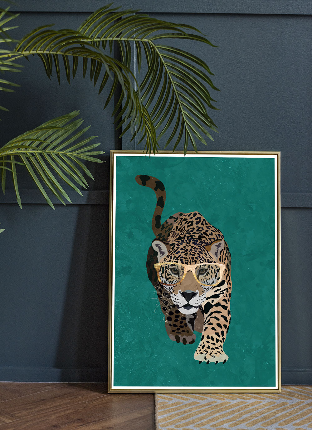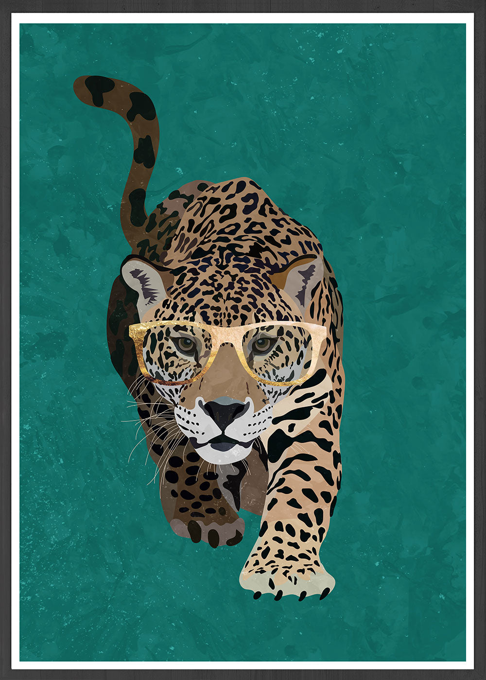 Cool Leopard Art Print by Sarah Manovski. On the prowl, in style. Yes this leopard is rocking it.
