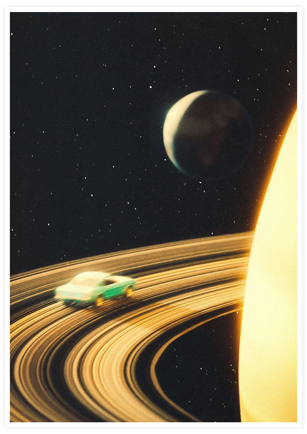 Saturn Highway Collage Print. Ride the rings of Saturn with this awesome art print by Taudalpoi.