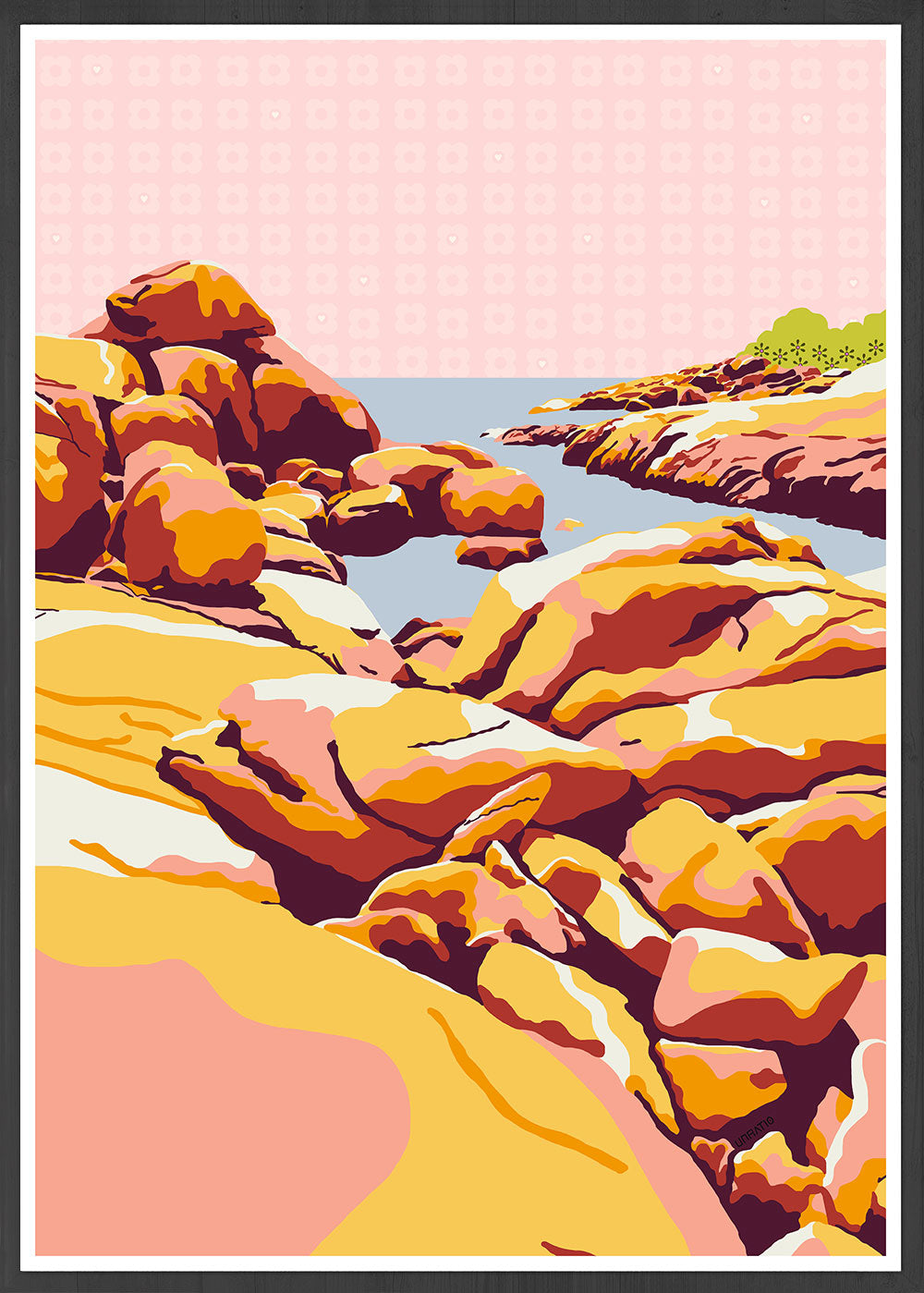 Unwind, recharge, and connect with the tranquility of the coast. Add the "Sunny Bay Print" by Unratio to your home today.