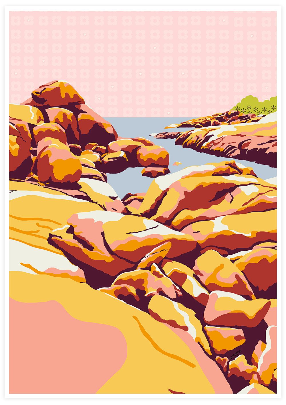 Bring the serenity of a coastal sunset into your home with the captivating "Sunny Bay Print" by Unratio. This breathtaking piece showcases a picturesque rocky shoreline bathed in the warm glow of the setting sun, creating a sense of tranquility and inviting you to unwind.