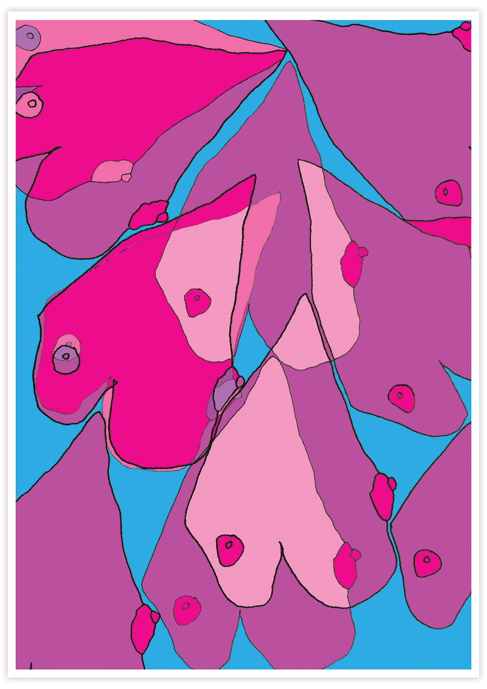 'Tits Up' Its all gone tits up. Hand Drawn Illustration and Coloured Digitally. Illustration Print by Alexandra Levene.
