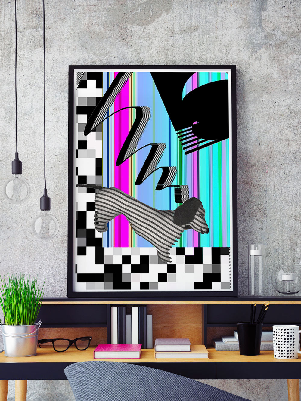 Hot Diggity Glitch Art Print by Allison Tanenhaus. Hot dog, these groovy stripes 'n' squiggles will give your walls a pixel perfect boost.