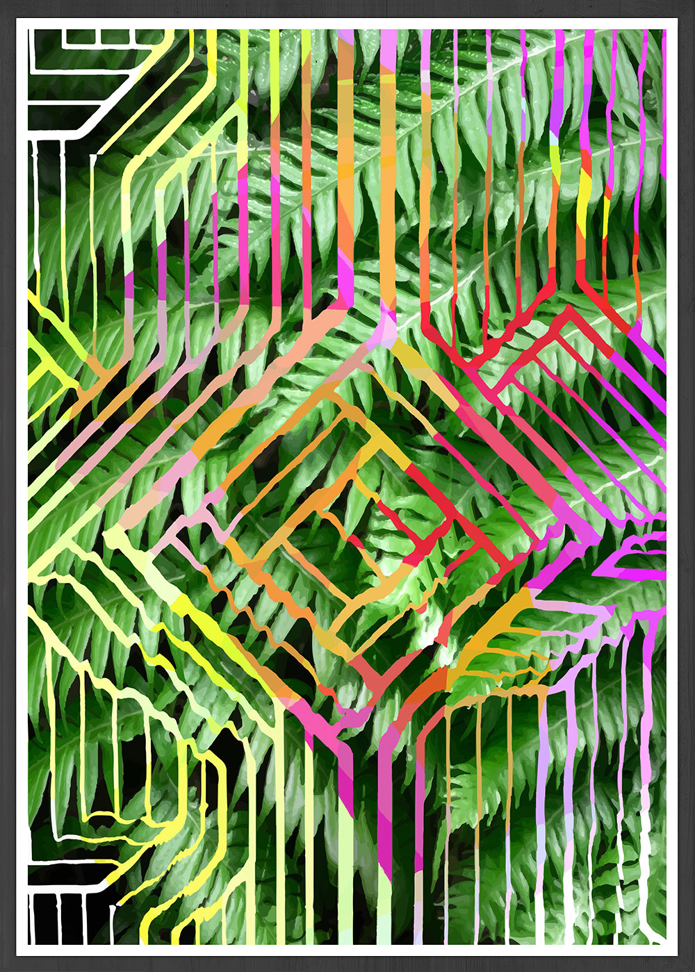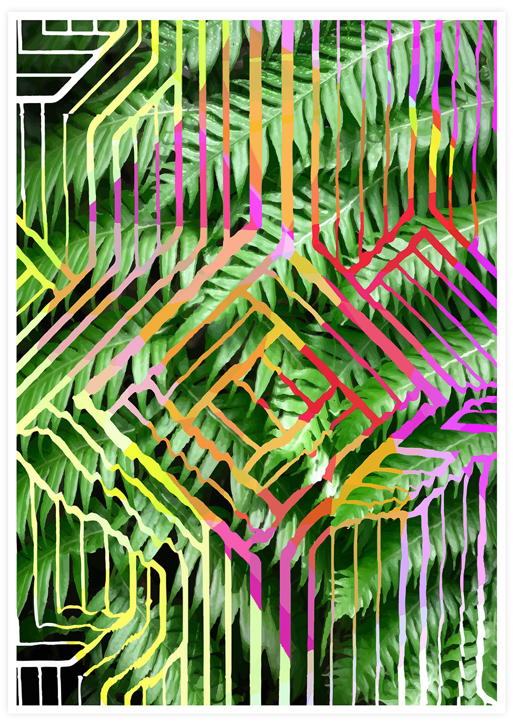 Tropicalia 12 Abstract Art Print by Allison Tanenhaus is a funky infusion of botanical delight with glitch art design and abstract style.