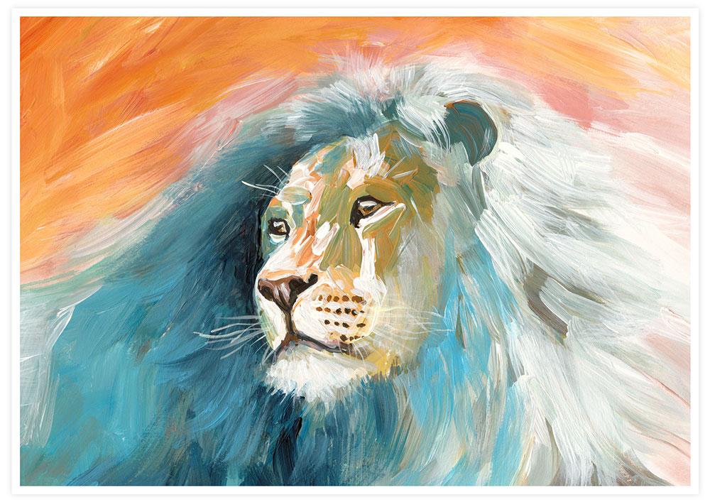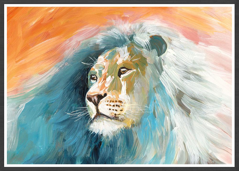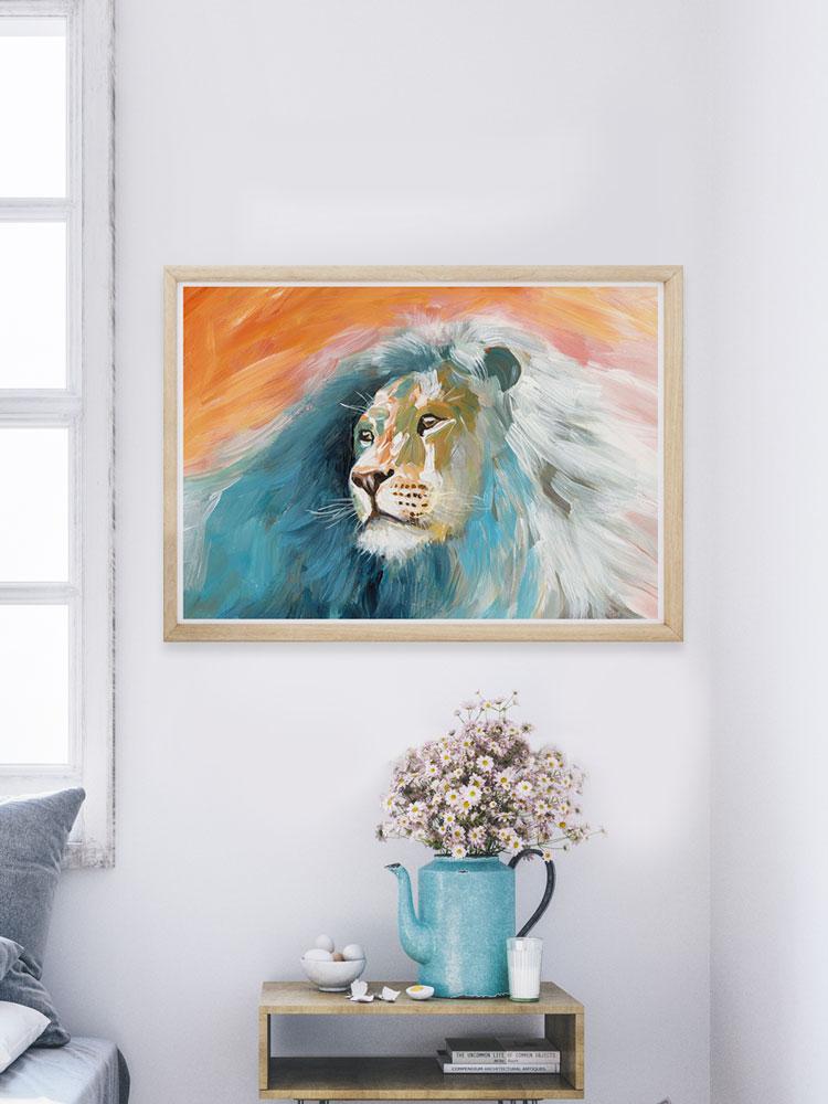 Roar Lion Painting Print by Bart E. Slyp. Acrylic Painting. The king of the plains of Africa. This print invokes sheer predatory power with blue and orange contrasting colours that demand your attention.