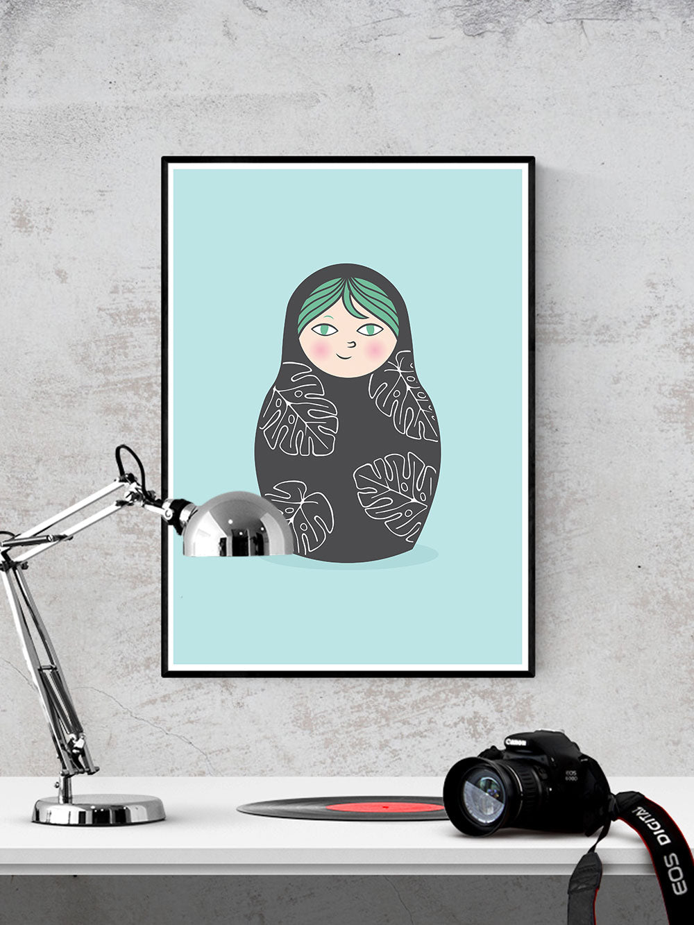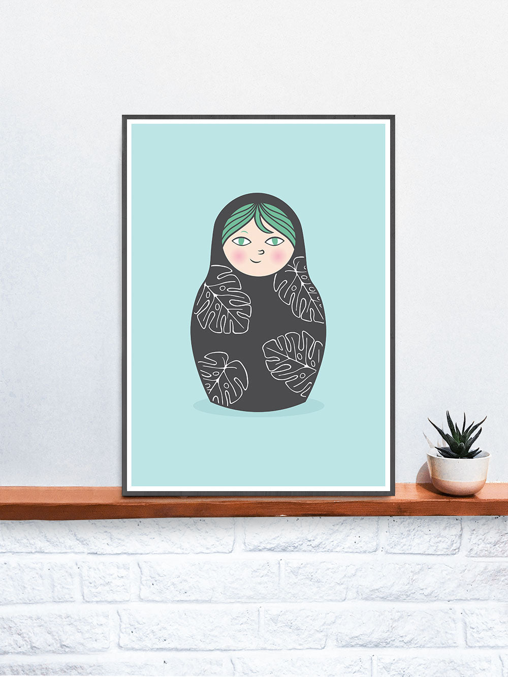 Matryoshka Monstera Illustration Print by Cristina Quero. Russian Doll Inspired Print.