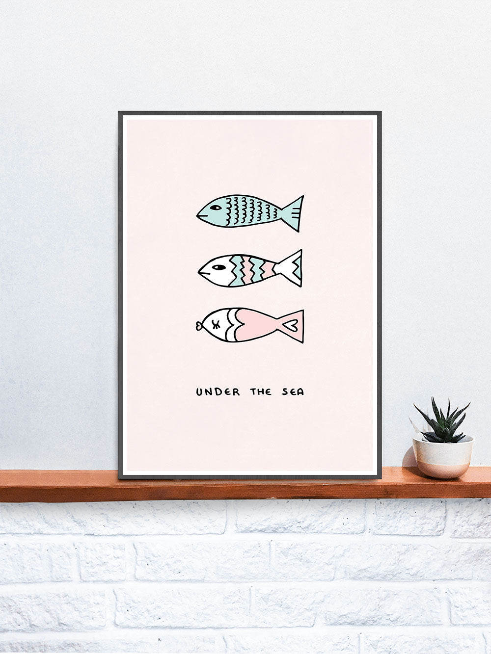 Under the Sea Illustration Print by Cristina Quero. Cute fish illustration print perfect for the humble pescetarian.