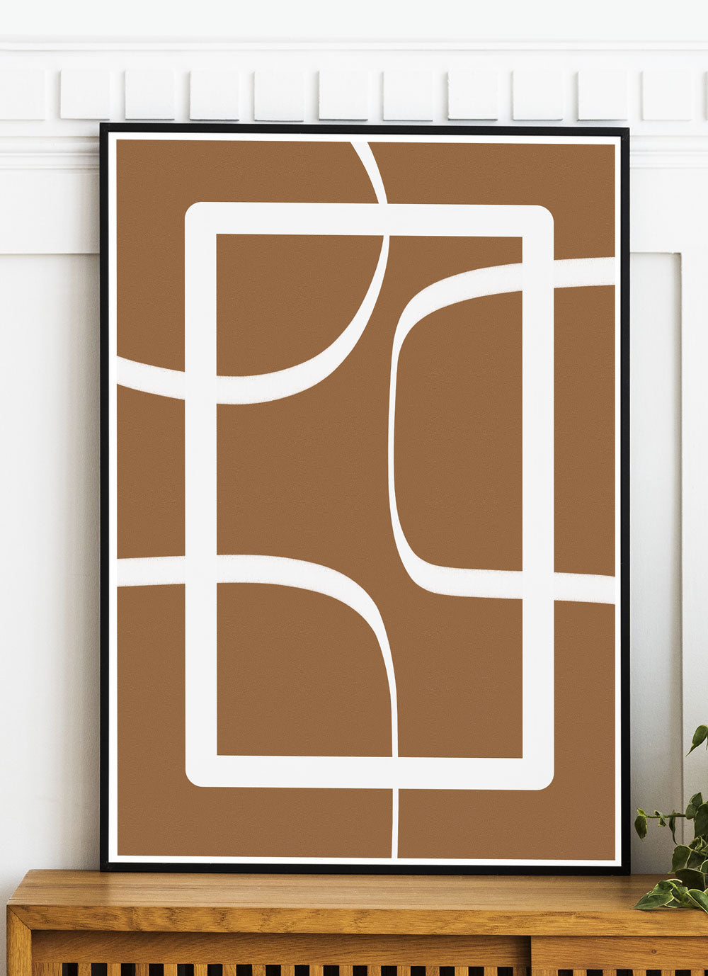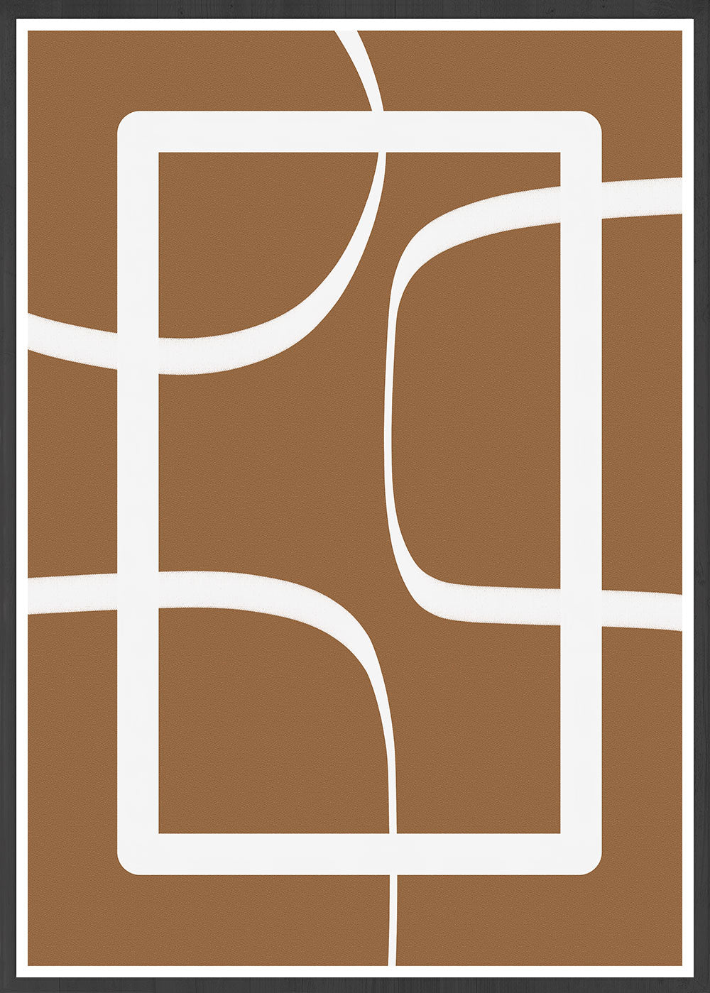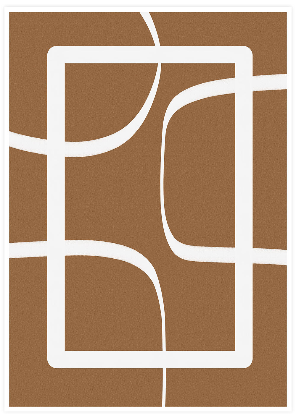 Windows of different shapes look out onto the world. Done in a calligraphy style, this piece features a beautiful brown background and white brush strokes.